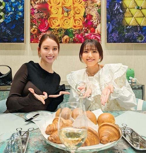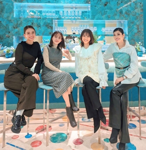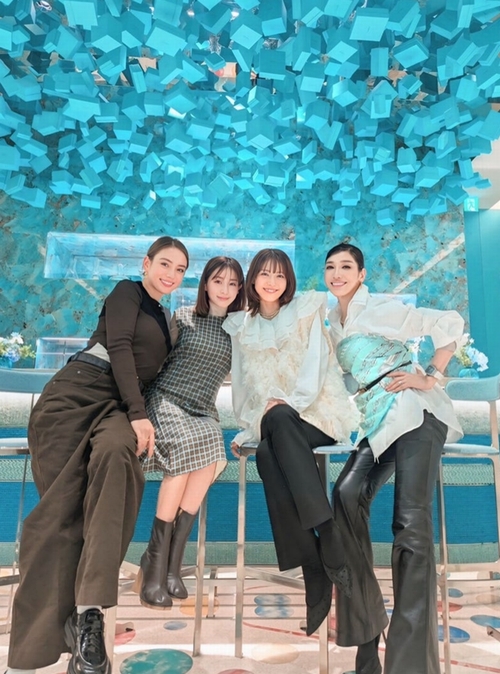 「SATC」みたいな四人の並んだ写真が好き」とアンミカ、田中、滝沢、若槻の4人が並ぶショットや、シェフ・庄司夏子による美しい料理や、有名な「フルール・ド・エテ(マンゴー)」を収めたスイーツ、「現代建築の巨匠ピーター・マリノ氏が手がけた建築に、ティファニーブルーのアートに囲まれた空間は、特に天井のティファニーボックスが印象的」と紹介し、こだわり抜かれた内装の写真なども公開した。