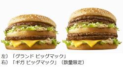 また、同商品のアンバサダーとして起用された横綱・白鵬関の「もっとビーフがあったら嬉しい」との一言をきっかけに開発された、「グランド ビッグマック」のさらに2倍、ビーフパティ4枚が入った「ギガ ビッグマック」も数量限定で発売する。