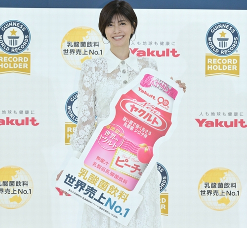 女優の内田有紀(49歳)が10月14日、都内で行われた「ヤクルト ギネス世界記録TM 認定授与式」に登壇。特製“くす玉割り”で祝福した。