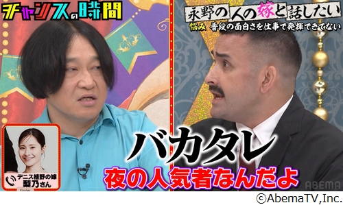 お笑いコンビ・デニスの植野行雄(44歳)が、10月26日に放送されたバラエティ番組「チャンスの時間」(ABEMA)に出演。電話出演した、妻で女優の比嘉梨乃(33歳)から「プライベートではめちゃくちゃ面白いのに仕事で発揮できていない」との悩みが打ち明けられた。