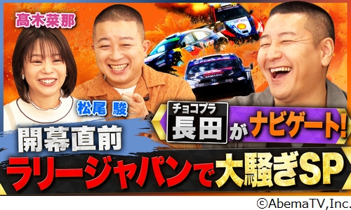 11月6日〜11月9日に開催される「FIA世界ラリー選手権(WRC) フォーラムエイト・ラリージャパン2025」を前に、公道を時速200kmで駆け抜けるWRCの迫力と、モータースポーツの奥深さを“楽しく学べる”番組として、ABEMAラリージャパン応援隊長のチョコレートプラネット・長田庄平がMCを担当。