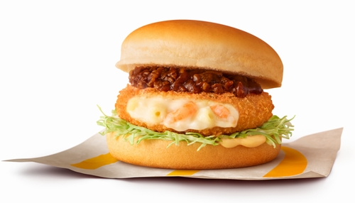今年で33年目を迎え、すっかり冬の風物詩となった「グラコロ」(440円〜/税込み)は、エビとマカロニ入りのクリーミーなグラタンコロッケ、キャベツ、特製ソースをふわふわのバンズではさんだ冬の定番商品。