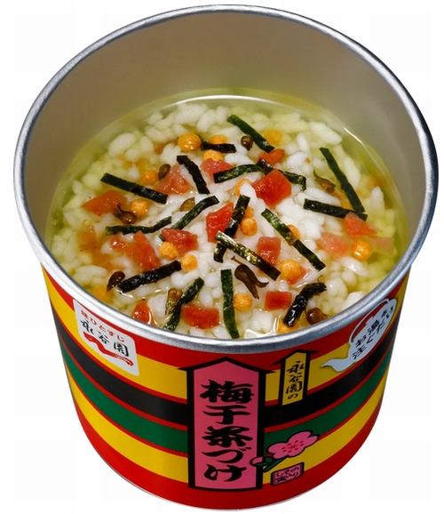 現在は「お茶づけ海苔」「さけ茶づけ」の2種類しか展開していないが、同社には「ぜひ梅干茶づけも発売してほしい!」との声が多く寄せられたことから、このたび「カップ入り 梅干茶づけ」を発売する運びとなった。