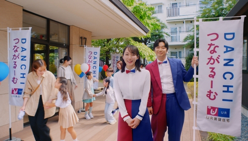 広々とした緑豊かな敷地内に、さまざまなタイプの部屋があることを表現した「外も中もステキ!」篇、敷地内の集会所で開催中の親子イベントに2人が飛び入り参加する様子を描いた「子どもの居場所」篇を通じて、単身者からファミリー世帯まで幅広い居住者のニーズに対応し、子どもが安心して遊び、共に育つ環境があるUR賃貸住宅で子育てすることの魅力を伝える。
