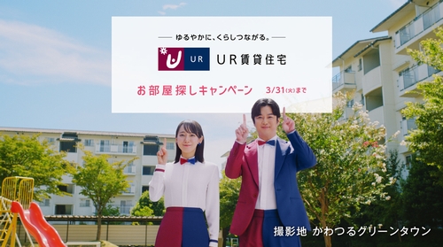 今回は、URのロゴカラーを基調としたおなじみの制服に身を包んだ「URであーるガール」の吉岡里帆、「URであーるボーイ」の千葉雄大が、埼玉県鶴ヶ島市にある「かわつるグリーンタウン」を訪問。単身者からファミリー世帯まで幅広い居住者のニーズに対応し、子どもが安心して遊び、共に育つ環境があるUR賃貸住宅で子育てすることの魅力を伝える。