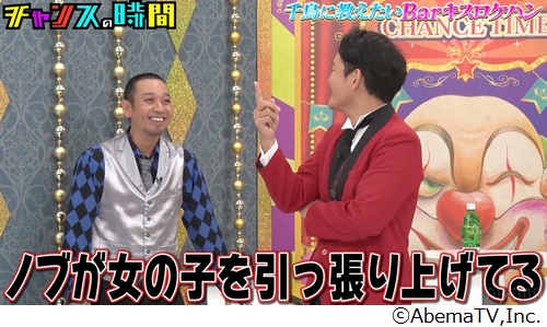 11月30日に放送されたバラエティ番組「チャンスの時間」(ABEMA)で、「浮気はせんけどBarキスはしたい」というノブの“願望”を叶えるためのロケ企画「千鳥に教えたいBarキスロケハン」を実施。東京・港区の会員制バーなどに潜入した。