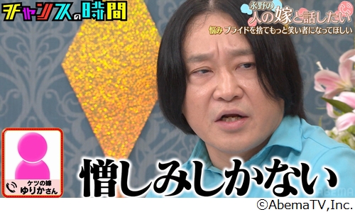 番組は今回、「チャンスの時間」のご意見番ポジションを担う永野が、芸人の“奥様”たちと電話で悩み相談を行い、解決へと導く企画「永野の人の嫁と話したい」第2弾を放送。スタジオには、電話相談の相手となる芸人妻たちの夫、ヘンダーソン・中村フー、ニッポンの社長・ケツ、そしてサツマカワRPGが順番に登場した。