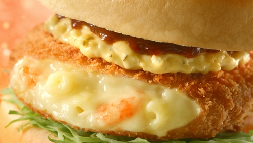 冬の風物詩として長年好評な「グラコロ」は、エビとマカロニ入りのクリーミーなグラタンコロッケ、キャベツ、特製ソースをふわふわのバンズではさんだ冬の定番商品。昨年、1993年に初登場して以来、史上初となるグラタンコロッケのリニューアルを行い、ホワイトソースにチーズのコクを加え、よりクリーミーになって登場した。